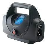 Plugs into standard household 120 volt outlet. Inflates in 3 steps - connect to the tire stem, set desired pressure and push to inflate. No tire gauge needed. The bright 3 inch digital gauge is easy to read and monitor progress. Includes 2 inflation needles, 2 foot non-marring hose, mounting bracket and 3 inch digital gauge with auto shut off. 5.07 lb., 12.44" length x 6.93" width x 10.31" height.